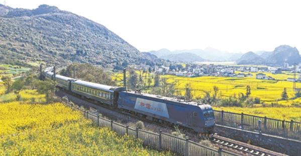 Passenger Train Runs Through Luoping Section of the Nanni...
