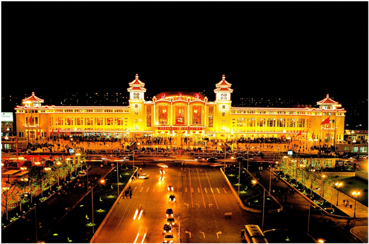 Beijing Railway Station, formerly known as the Zhengyangmen East Railway Station open to traffic in 1901, was renamed as Qianmen Railway Station, Beijing Railway Station, Beiping Railway Station, and Beiping East Railway Station afterwards. The new Beijing Railway Station, one of the "Ten Great Buildings in Beijing" in the 10th anniversary of the founding of the People's Republic of China, was officially open to traffic on September 15, 1959 after being rebuilt. At present, the Beijing Railway Station, with a land area of 250,000 square meters and a building area of 80,000 square meters, is in an axisymmetric layout with waiting hall in the front and the platform in the rear, and its facade at both wings surrounds the central part. The main building of the station faces north, with a width of 218m from west to east, a maximum depth of 124m from north to south and a building area of 71,054m2. Beijing Railway Station stands as a landmark building of both China and its capital city.