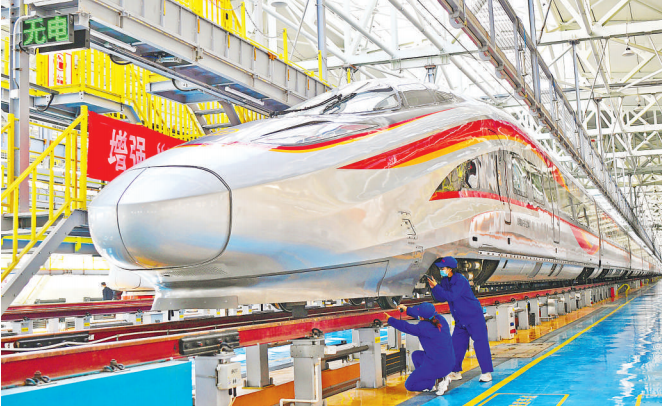 Staff members from Beijing EMU Depot have stepped up the maintenance of high speed trains to ensure traffic safety in winter. This photo, taken on November 17, shows two female workers, from an maintenance crew at Xiongan New Area EMU Servicing Depot, checking the brackets of a Fuxing intelligent EMU train.