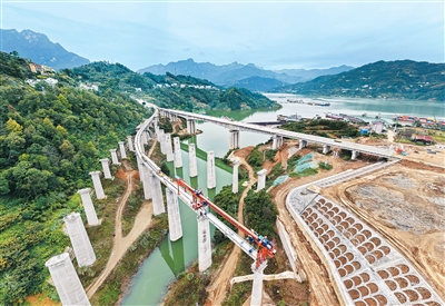The Maoping Port rail link of the Three Gorges Hub starts from Yichangnan Railway Station in Hubei province and ends at Maoping Port in Zigui county, Yichang city, with a total length of 39.59 kilometers. Once completed, the line will form an integrated multimodal transport system—combining river, highway and railway—together with the Three Gorges south-bank and north-bank expressways. It will enhance water-land transshipment capacity across the Three Gorges and help ease traffic pressure on the Three Gorges Ship Lock.