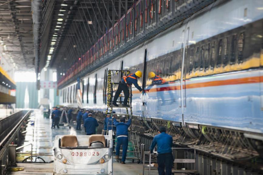 On February 11, at the Qingdao North EMU Depot of the Qingdao EMU Section under CR-Jinan, staff at various posts were inspecting and maintaining EMU trains entering the workshop. The site can be regarded as a “hospital” for EMU trains. During the Spring Festival travel rush, trains arrive here one after another for maintenance and inspection to ensure safe operation during the travel season.