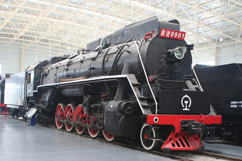 1956年9月18日,我国自行研发的第一台大功率干线货运蒸汽机车研制成功,定名为和平型0001号,即如今珍藏在中国铁道博物馆的前进型0001号蒸汽机车。该机车为大连机车车辆工厂制造,全长26.1米,构造速度为每小时80公里,是第一台前进型干线货运蒸汽机车。机车保存完整,主要零部件齐全,被定为国家一级文物。该文物现收藏于中国铁道博物馆。