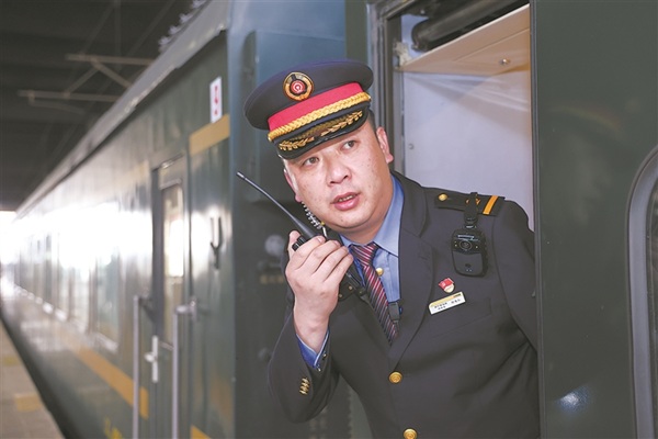 正午时分,经过精心整备的Z8981次旅客列车准时停靠在青藏铁路起点站——西宁站。一位身姿挺拔的列车长伫立在列车前,耐心回答旅客问询,细心帮扶重点旅客,一丝不苟地开展站车联控,身影坚毅而温暖。
