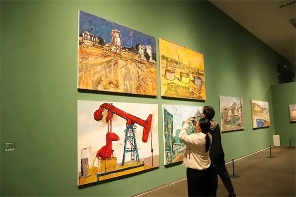 梁宇表示,这是他第8次个人展览,与之前的展览相比有突出的变化。在本次展览中,作品内容更多元,创作风格更丰富,既有记忆中那些永不消逝的铁路风景,比如信号灯系列、车站系列、火车系列等;也有心中主观创造的风景,如红房子系列、道口系列;还有新近创作的现实风景,如克拉玛依系列。