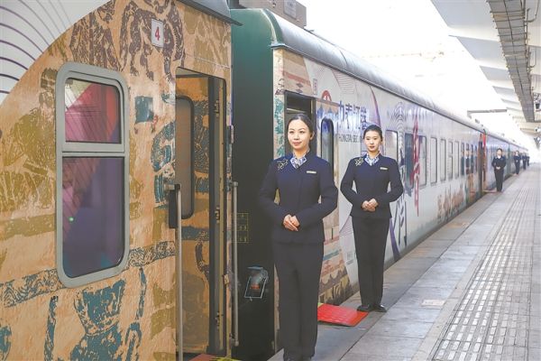 文物研学主题旅游列车将车厢化身为博物馆,旅客在旅途中,与历史文脉对话,与千年匠心相逢。