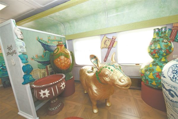 车厢内展示的错金银镶嵌铜牺尊,是战国时期的青铜酒器,被大家称为“战国潮牛”。