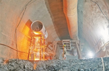 图为施工人员在渝昆高铁彝良隧道内开展焊接作业。陈畅摄