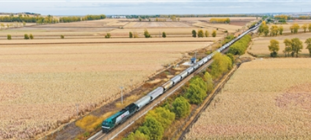 10月11日,一列编组50辆、满载3200余吨玉米的粮食专列从黑龙江省双鸭山市升昌站驶出,驶向辽宁省大连市。货物到达大连后将转运至上海、四川、...