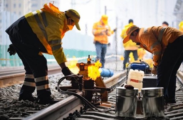 3月16日,铁路职工在京沪铁路南京林场站进行钢轨焊接作业。近日,中国铁路上海局集团有限公司对管内京沪铁路开启了2026年第一阶段集中修施工。南京桥工段、南京电...