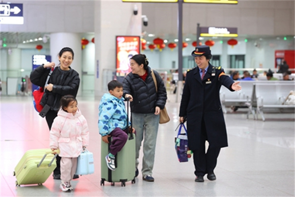 湖北襄阳火车站在候车室举办“灯火映归途”元宵节活动,为南来北往的旅客送...