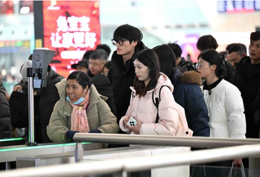 1月3日,旅客在石家庄火车站候车大厅检票进站。当日是元旦假期最后一天,铁路迎来返程客流高峰。陈其保/摄(新华社发)