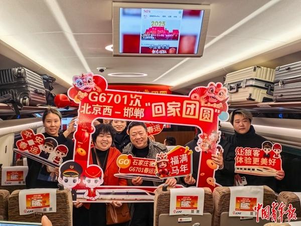 2月2日,北京西站,G6701次列车车厢内洋溢着旅客们回家过年的喜庆氛围。中青报·中青网记者 陈思阳/摄