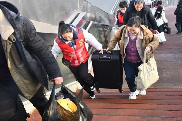 湖北青年志愿者为春运旅客搬运行李。受访者供图