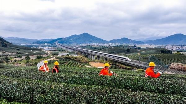南昌高铁基础设施段工作人员正在合福高铁南平市站至武夷山北站区段检修。鲍赣生/摄
