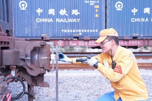 “8道34210次,编组54辆,始发作业注意安全。”3月17日12时,广西北海市铁山港站内,工作指令通过对讲机清晰传来。防城港车辆运用段铁山港技术交接作业场检车二班货车检车员左超湘闻声应答,和工友李永结拎起检车工具,快步奔赴股道,投入紧张有序的检车作业中。