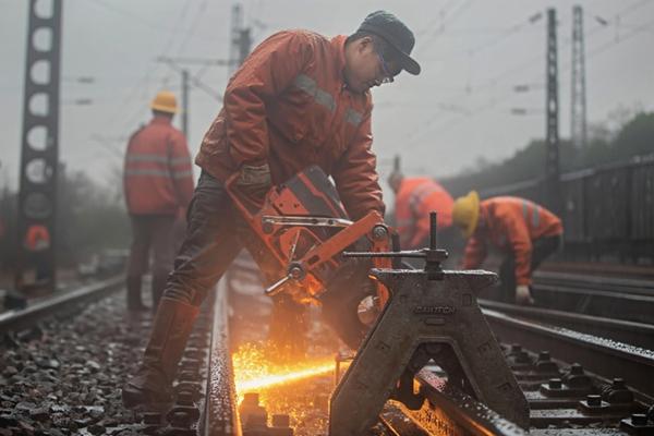 3月9日深夜11点半,鹰潭站站场安静下来。最后一趟列车驶过,铁轨还在微微震颤,国铁南昌局鹰潭工务段钢轨焊联工王云已经带着徒弟站在线路旁等候。对讲机里传来调度指令:“鹰潭站焊联组,可以开始作业。”