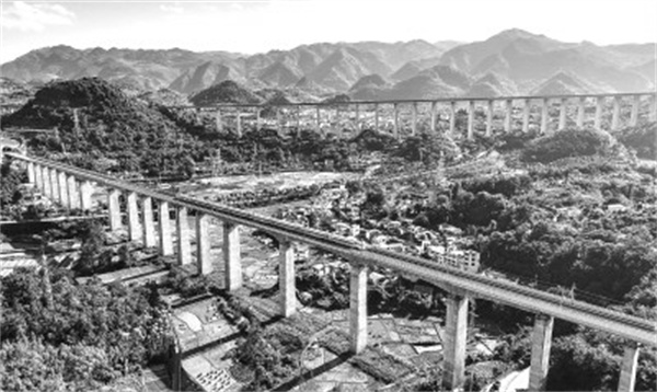 光明日报:运行试验列车经过贵州盘兴高铁三标段清水河镇特大桥