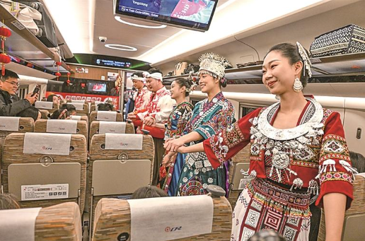青年志愿者在贵州遵义开往陕西延安的高铁上给旅客表演节目。新华社发 讲述人:广州新塘站客运值班员 杨旭 这是我从事客运工作的第15...