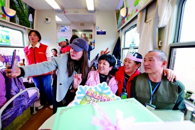 黑龙江省哈尔滨东站,银发旅客踏上旅游专列开启旅程。新华社发