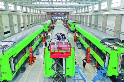 光明日报:太原车辆段检修人员对列车进行检查维护