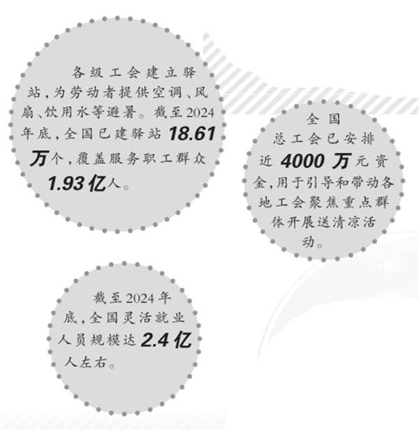 据了解,这些年,全国总工会针对户外劳动者“吃饭难、喝水难、休息难、如厕难”等实际问题,推动各级工会建立众多驿站。截至2024年底,全国已建驿站18.61万个,覆盖服务职工群众1.93亿人,日服务230.97万人次,全年累计服务职工群众近8亿人次。