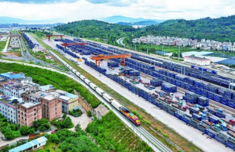 中老铁路开通后,带动沿线形成多个跨境经济合作区,促进中老贸易额高速增长,从2021年的280.88亿元,2022年的380.44亿元,2023年的500.65亿元,到2024年的586亿元,可以说一年跨上一个大台阶。三年多时间里,中老铁路的跨境货物列车从每天两列增至最高20余列,货物种类从10多种增至3000多种。