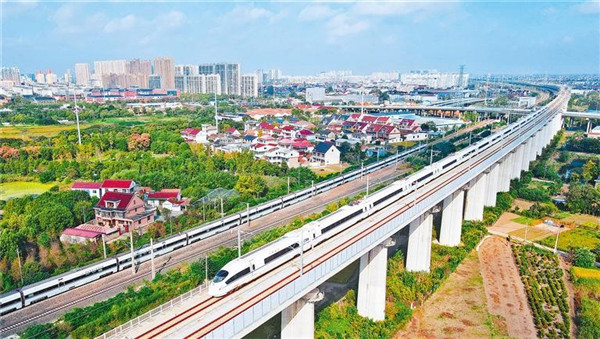 10月10日,动车组列车行驶在江苏省如皋市境内。11日起,全国铁路实行新的列车运行图,安排图定旅客列车超1.3万列,货物列车超2.3万列,铁路客...