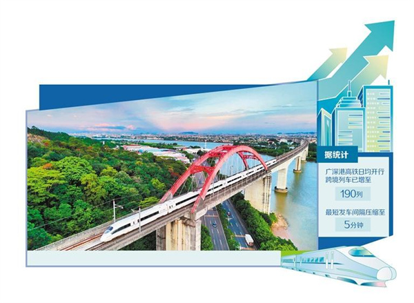 7年来,随着广深港高铁不断提质增效,越来越多的大湾区居民开启了“说走就走”的双城生活模式。据统计,广深港高铁日均开行跨境列车已增至190列,最短发车间隔压缩至5分钟,“公交化”运营成为现实;“一地两检”政策实施后,旅客出入境手续耗时从原先几十分钟缩短至5分钟左右。香港赴内地旅客中,超过九成前往广东省内;内地访港旅客中,近八成来自广东。广深“双核”牵引、多城联动的大湾区发展格局日渐清晰。