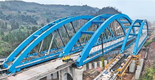 经济日报:正在建设中的西渝高铁跨营达高速公路大桥