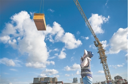 目前,由中铁建工承建的新建上海至南京至合肥高速铁路南通站站房施工正有序推进,高架站房B区主体结构完成,侧式站房底板建设完成过半。据介绍,新建南通站站房及相关工程是沪渝蓉高铁的重要组成部分,站房建筑面积约55000平方米,建成后站场总规模达3场9台20线,对助力区域内交通融合发展、推动长三角更高质量一体化发展等有重要意义。图为7月21日,中铁建工工人在施工现场指挥塔吊作业。新华社记者 季春鹏摄