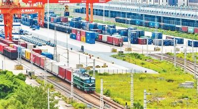 图为满载国产汽车配件的中欧班列即将启程。马 赫摄(影像中国)