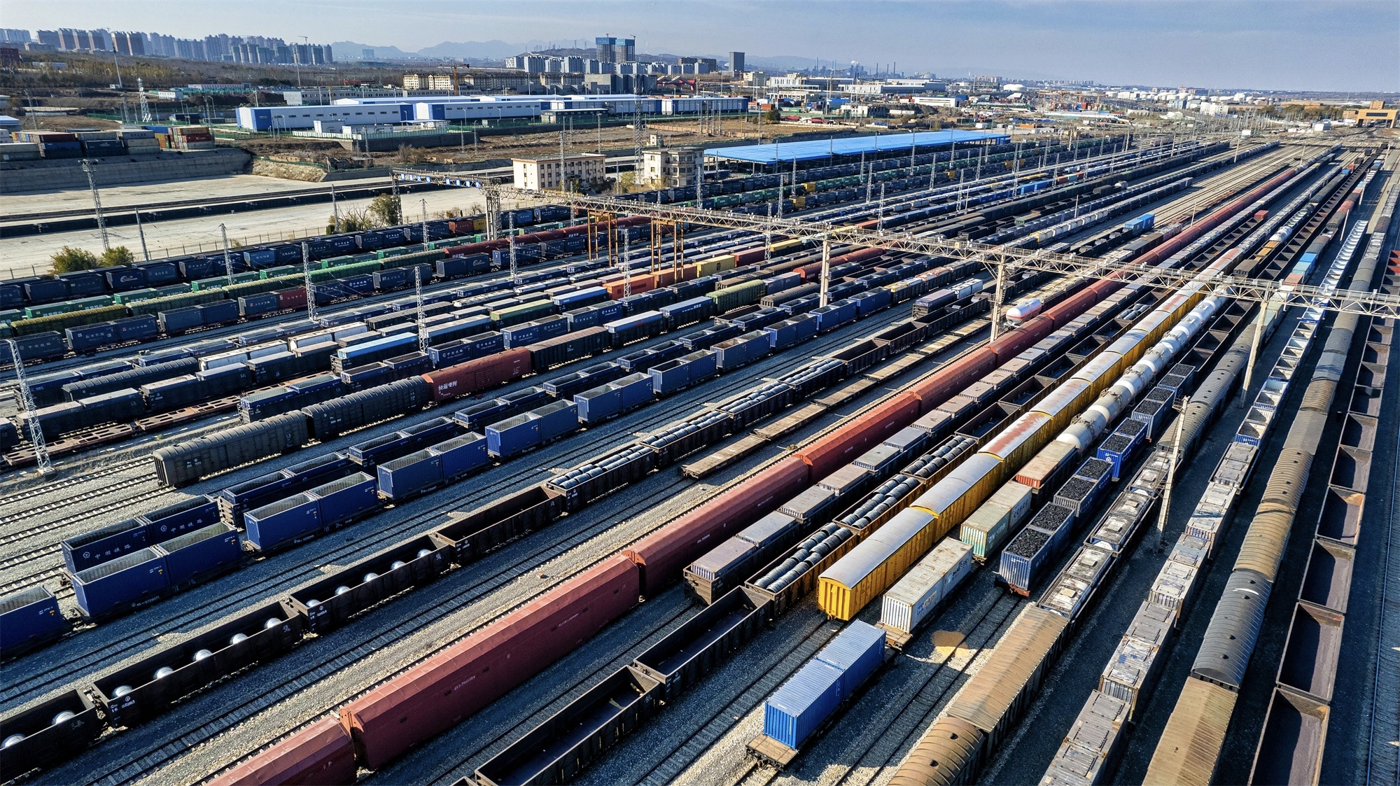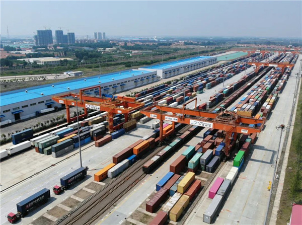 山东青岛,中国—上海合作组织地方经贸合作示范区(以下简称“上合示范区”)多式联运中心,一条条铁轨在此交错,延伸向远方。货场内,巨大的龙门塔...