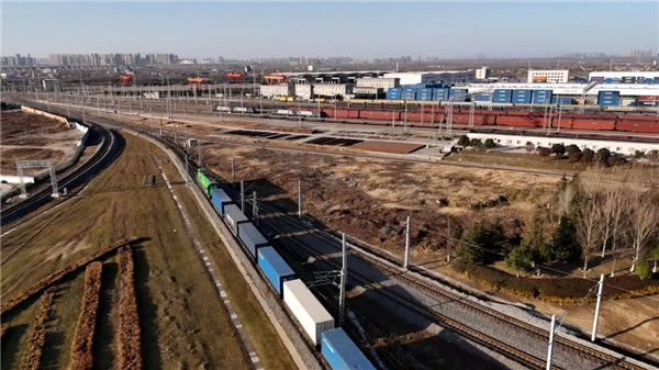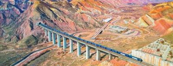 甘肃省兰州市,一列中欧(中亚)班列行驶在兰新铁路周家庄货联线上。王光辉摄(影像中国)
