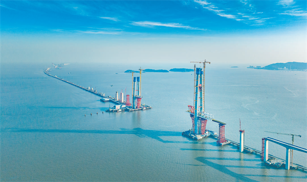 世界最长跨海高速铁路桥——杭州湾跨海铁路大桥正加快推进建设。该桥全长29.2公里,设计时速350公里,是江苏南通至浙江宁波高铁的控制性工程,建成后将进一步完善...