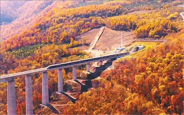 纵观全线,在长白山余脉与辽河平原间,沈白高铁以77%的桥隧比穿越山水。