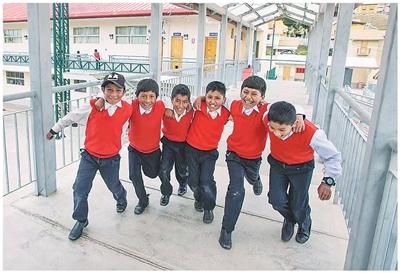 秘鲁拉斯邦巴斯铜矿建造的新富埃拉班巴社区教育综合体内的当地学生。中国五矿集团有限公司供图