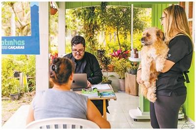 兽医对巴西皮亚萨盖拉岛居民的宠物进行问诊。泰莎·塔娜卡摄