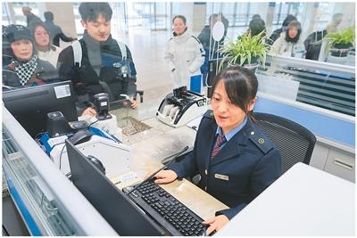 1月19日,2026年中国春运火车票正式开始发售。2026年铁路春运自2月2日开始,至3月13日结束,为期40天。图为南京南站工作人员在售票处为旅客办理车票业务。