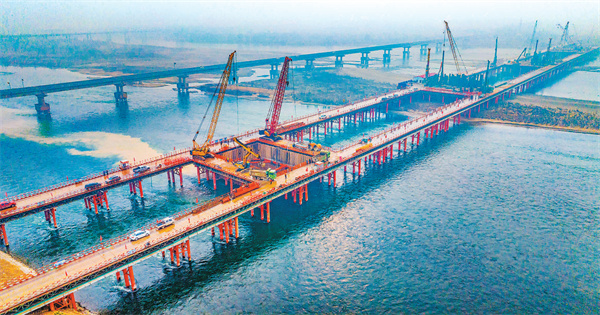 人民日报海外版:洛阳黄河公铁大桥建设现场