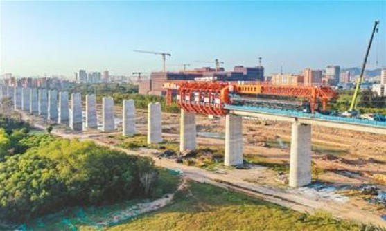 连日来,在广东东莞的深江铁路东莞段建设现场,施工人员抢抓春季施工“黄金季”,加速推进项目建设。深江铁路是国家“八纵八横”高铁网沿海通道的重要组成部分,建成通车后,将把深圳、东莞、广州、中山、江门这五座大湾区城市更紧密连接在一起,实现深圳前海自贸区与广州南沙自贸区半小时高铁互联互通,助力打造“轨道上的大湾区”。