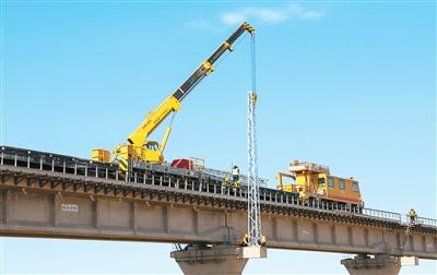 人民日报海外版:太锡铁路闪电河特大桥有序开展接触网钢柱安装作业