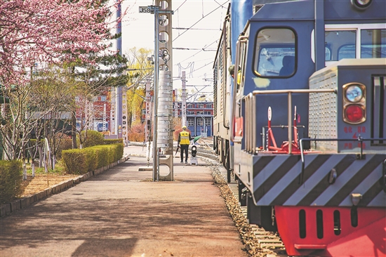 近日,中国铁路哈尔滨局集团有限公司牡丹江机务段厂区,一辆铁路专用牵引车推送着一台等待维修的机车向检修库驶去。由于机车庞大的身躯挡住了牵引车驾驶员的视线,他需要与在前方领车的防护员密切配合,以保证机车转线过程中的安全。手持信号旗的防护员留给他的始终是背影,但那却是他的眼睛。韩勇 摄