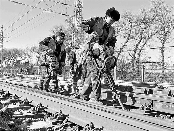 近段时间以来,中国铁路太原局集团有限公司朔州工务段连日组织各班组,进行冬季设备整修、扫雪除冰、防断巡检等重点作业。作业中,各班组重点盯控防护规范落实、劳保装备穿戴等情况,强化职工互控联保。作业后,通过小结会复盘、梳理问题、总结经验,持续优化安全管控举措,切实扎紧冬季人身安全“篱笆”。本报通讯员 帖中华 马新忠 摄