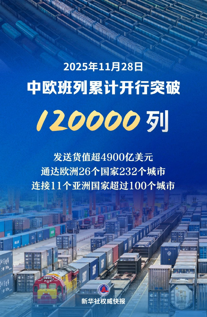 新华社微博:【新华社权威快报|#中欧班列累计开行突破12万列#】