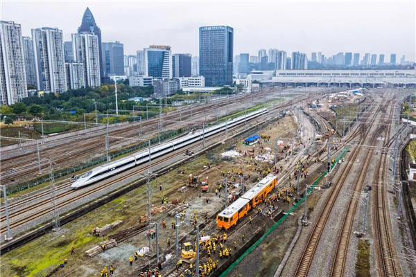 这是12月22日拍摄的成渝中线高铁引入重庆北站工程施工现场。12月23日凌晨,成渝中线高铁引入重庆北站工程第二阶段站改I级施工顺利完成。此次...