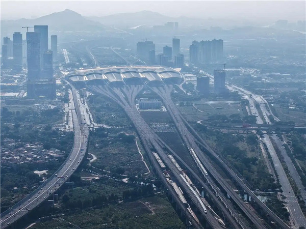 12月21日,列车行经正在施工的广南联络线广州南左右线大桥。由中铁十一局承建的广(广州站)南(广州南站)联络线广州南左右线大桥位于既有京...