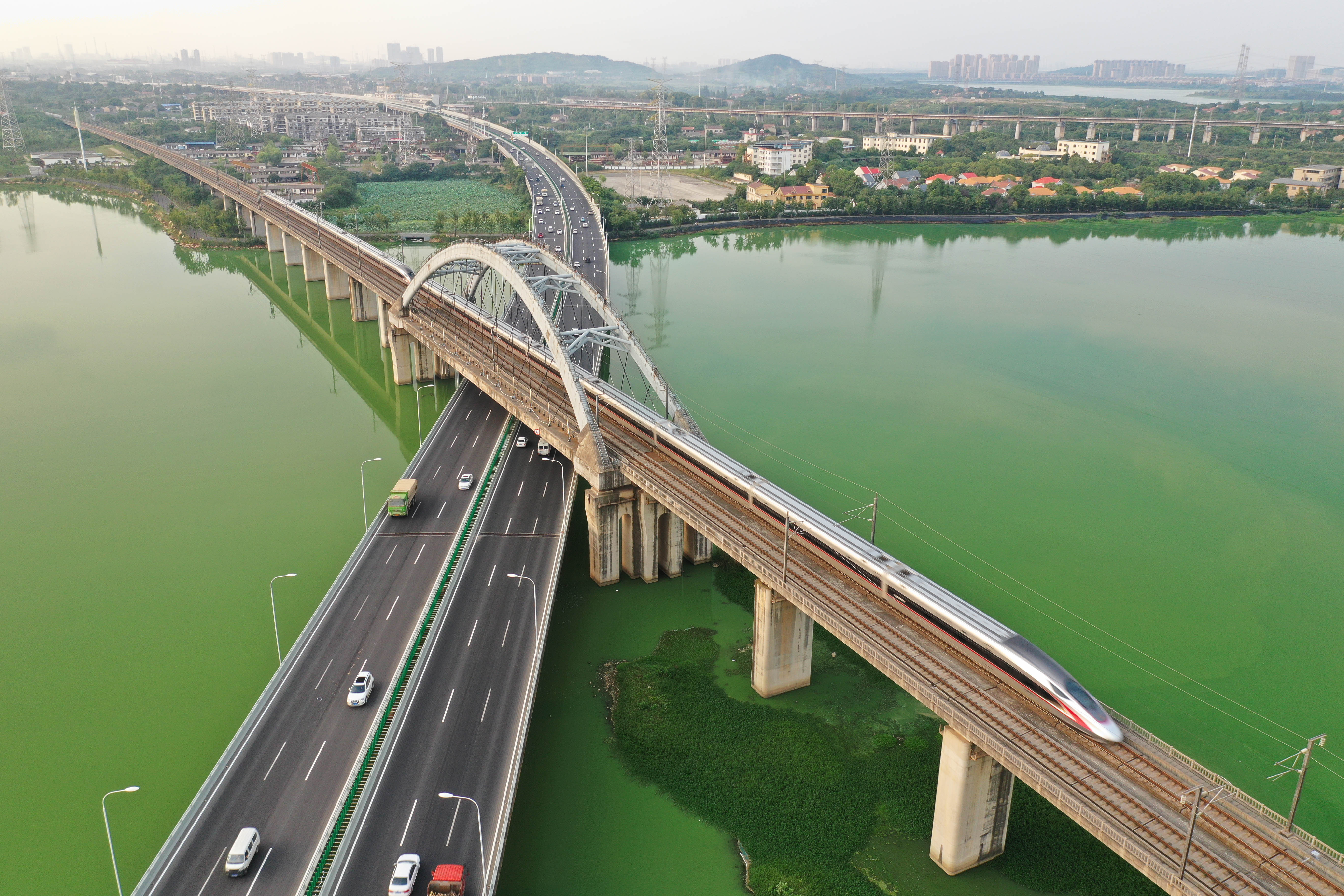 这是11月27日拍报的湖北十堰神定河特大桥。11月27日,在湖北十堰神定河特大桥上,西安至十堰高速铁路(简称”西十高铁”)全线最后一对长钢轨铺设落地,标志着西十...