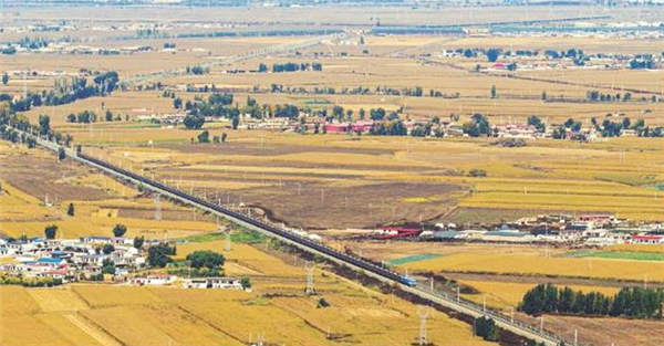 这是11月25日在黑龙江省绥化市庆安县永华村拍摄的哈伊高铁哈铁段铺轨现场。当日,在黑龙江省绥化市庆安县永华村哈伊商铁哈铁段铺轨现场,施工方中铁二局的四名工人...