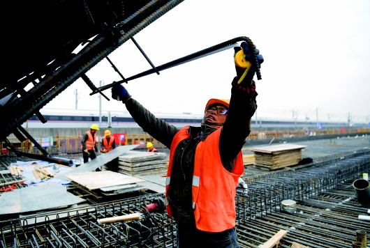 1月1日,中铁四局工人在引江济淮沪蓉铁路改建工程施工现场作业。当日是元旦假期,在位于安徽合肥的中铁四局引江济淮沪蓉铁路改建工程施工现场,劳动者依旧奋战在一线,坚守岗位。 新华社记者刘军喜摄
