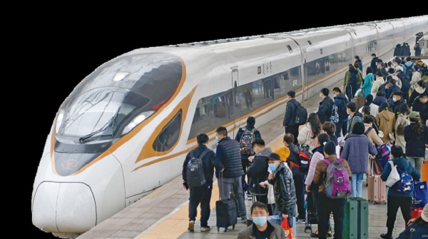 2月15日,旅客在河南洛阳龙门站乘车出行。 新华社发(张怡熙摄)
